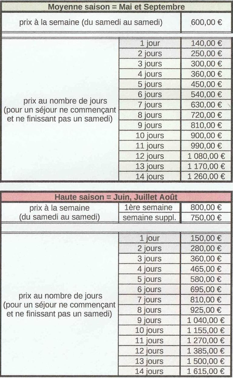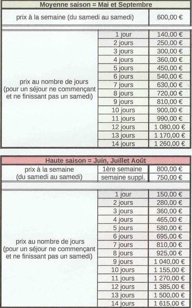 Une caution de 300 € (chèque non encaissé ou espèces) sera également demandée à l'arrivée au gîte.